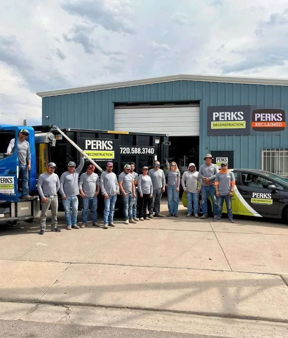 As a mission-driven deconstruction company, we carefully dismantle rather than bulldoze to maximize salvage and reuse, keeping sites cleaner with far less dust, noise, and disruption. We’re a fully insured Colorado Minority/Women Business Enterprise (M/WBE) serving the Boulder–Denver area. Our team delivers turnkey deconstruction and provides the waste and donation receipts you need for compliance and tax-deduction documentation. We also run Perks Reclaimed, where we process and resell salvaged building materials to the public.